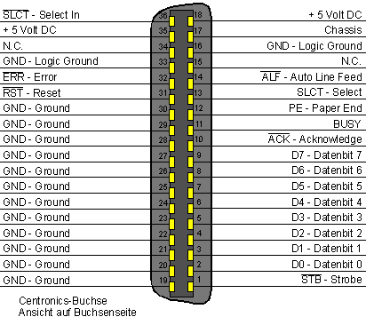 Centronics-Schnittstelle, parallel, Drucker-Port